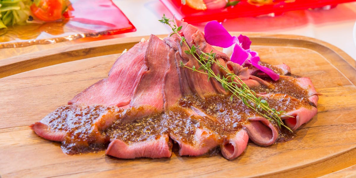 | お食事 | ※メニューは仕入れ状況により変更する場合がございます。予めご了承下さい。 <料理内容> ■前菜 ~Appetizer~ 季節のオードブル盛り合わせ ■サラダ ~Salad~ クラシックシーザーサラダ ■パン ~Bread~ 焼きたてピタブレッド ■パスタ ~Pasta~ シェフのおすすめパスタ ■肉料理 ~Meat dish~ 自家製ローストビーフ ■デザート ~Dessert~ |